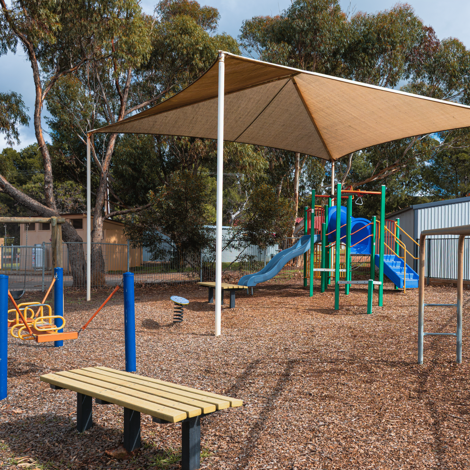 Conveniently located beside the skate park and oval, the playground offers plenty of room for kids to burn off energy and for the whole family to stretch their legs after a long drive.