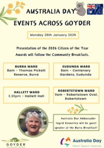 Details: Free BBQ Breakfast. BYO Chairs and Cutlery. Australia Day Ambassador Ingrid Kennerly will be guest speaker. Awards presentation will follow the community breakfast.