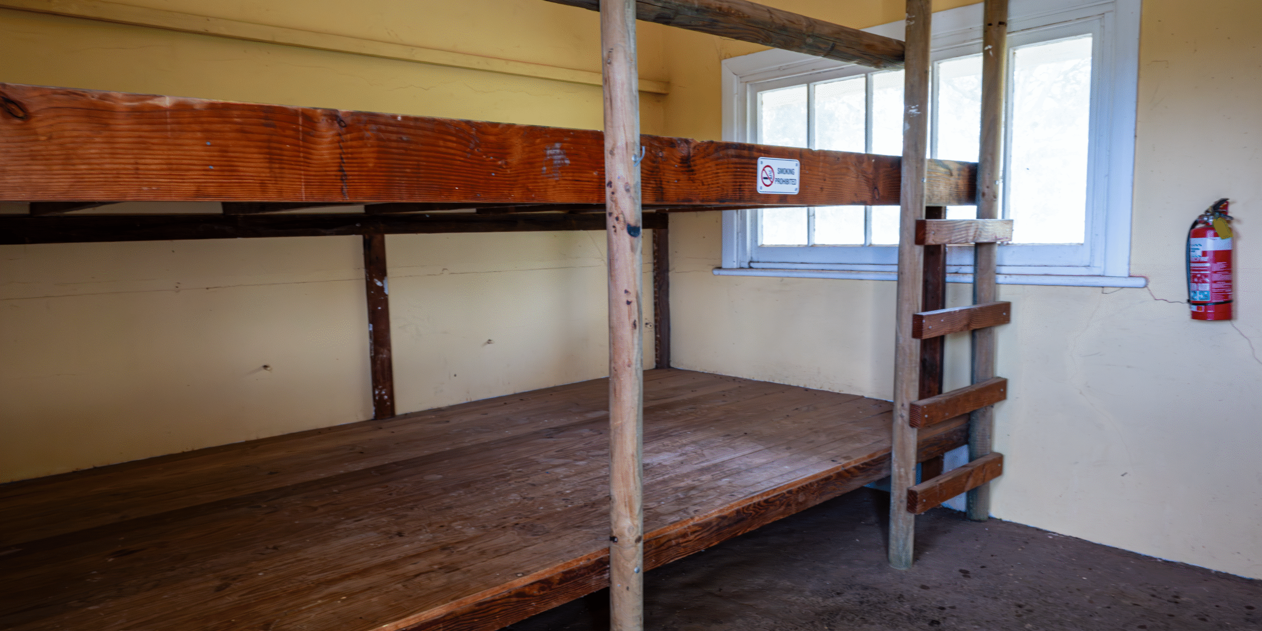 Facilities include bunks, a water tank, combustion stove, kitchen sink, and toilet, everything you need for a practical overnight stay on the trail.