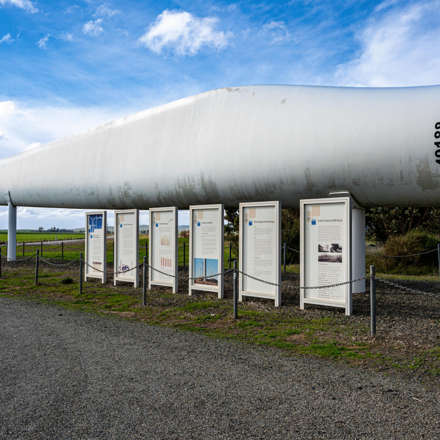 Ever driven past a wind farm and wondered just how big those blades really are? At Mount Bryan, right along the highway, you can see a full-sized wind turbine blade up close, an impressive sight that gives real perspective on the scale of renewable energy.